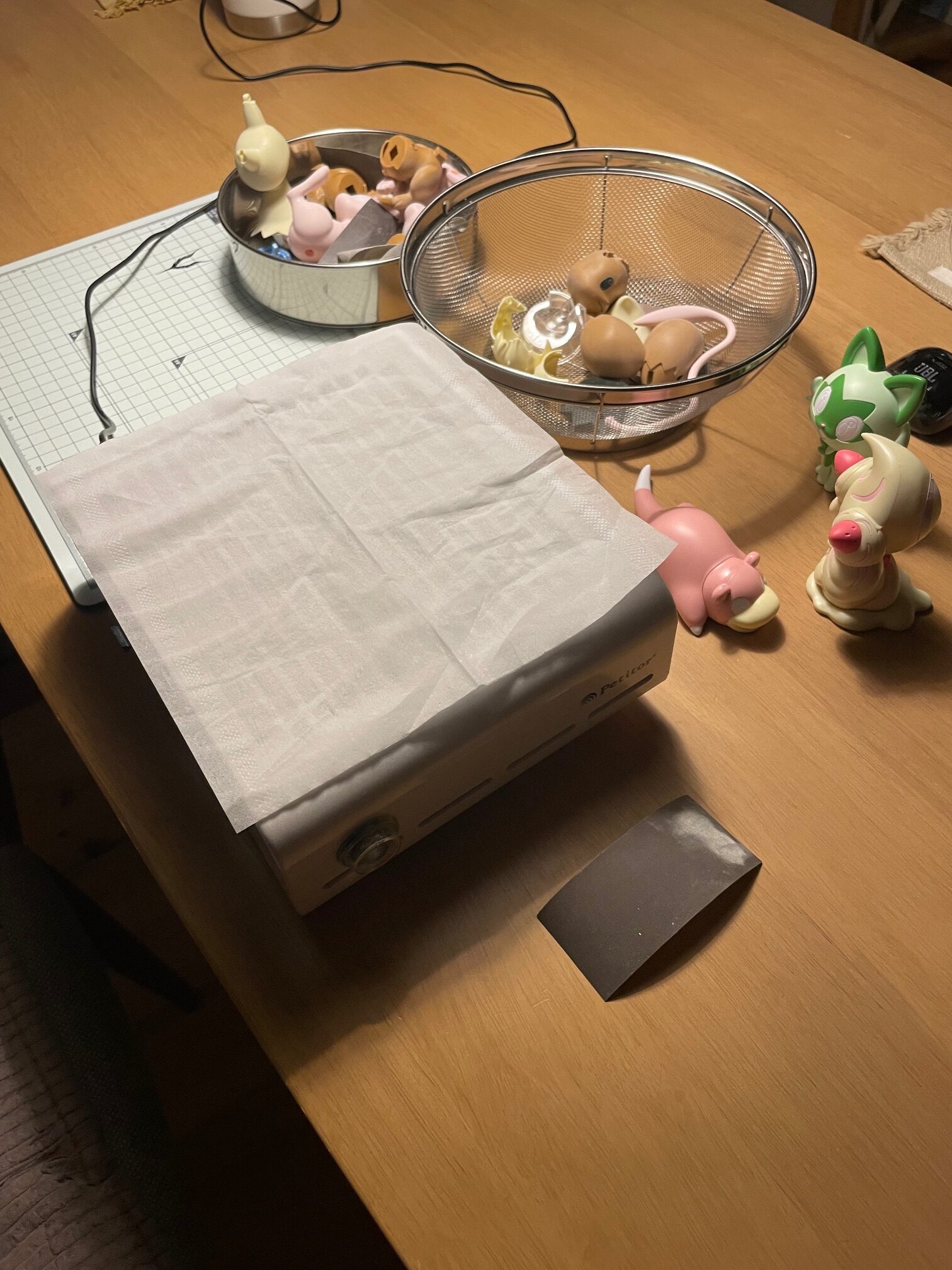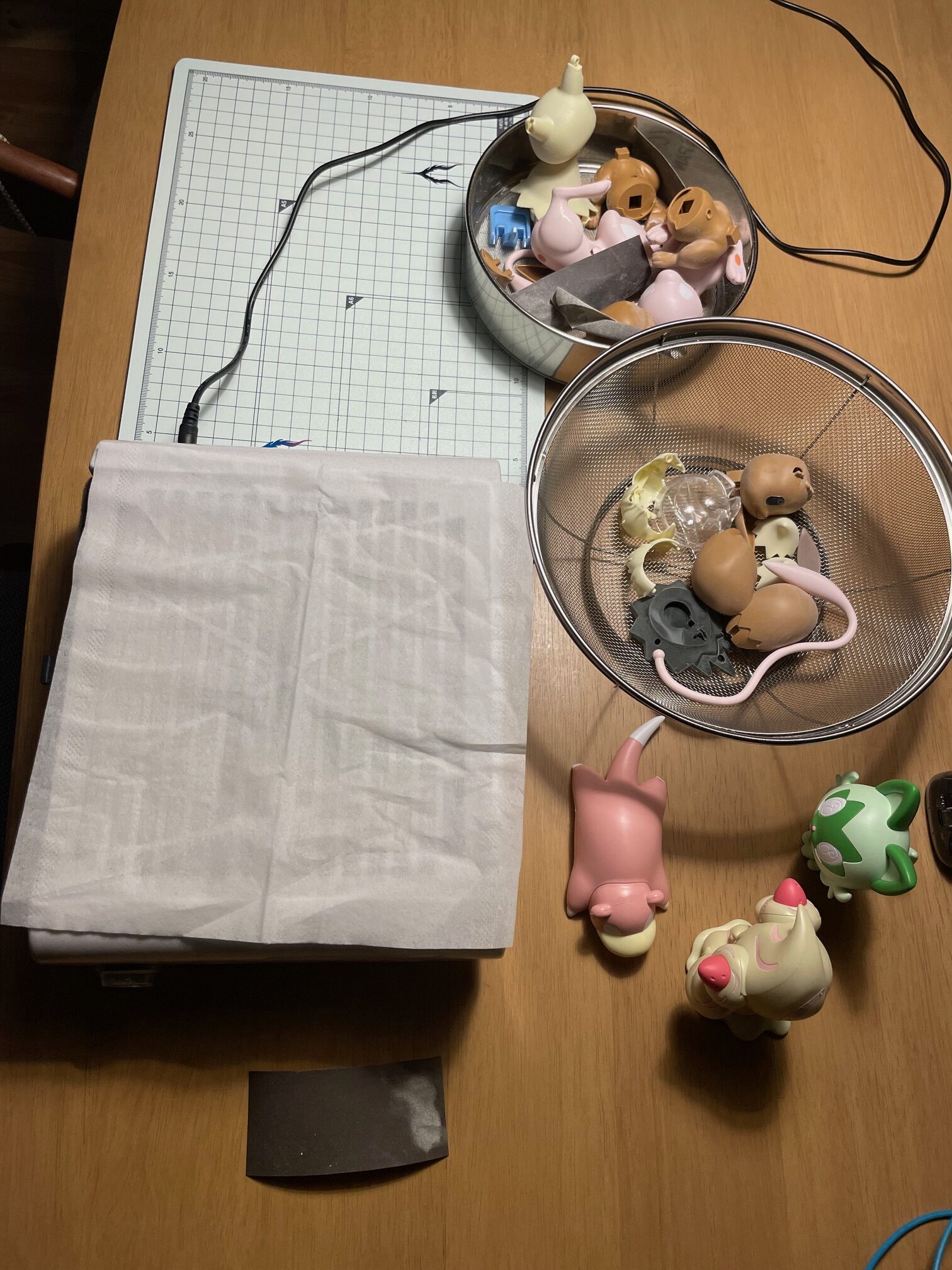 もちろんデスクの上は、削り粉だらけ・・・・・・作業後は掃除機とキムワイプふき取りで完了!!