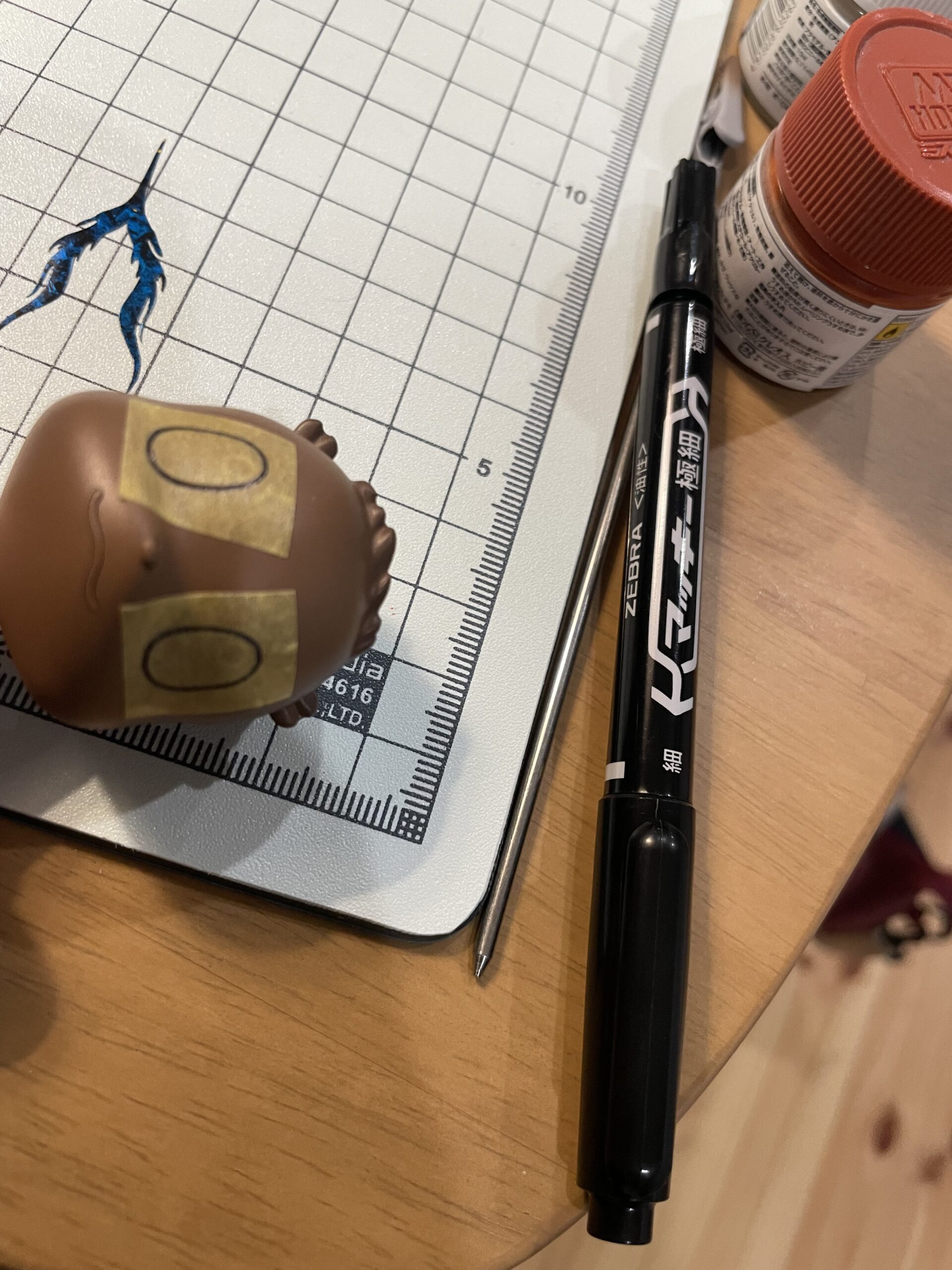 ⑪鼻と口を筆塗で塗装「タミヤエナメルカラーX-1:ブラック 」を塗装