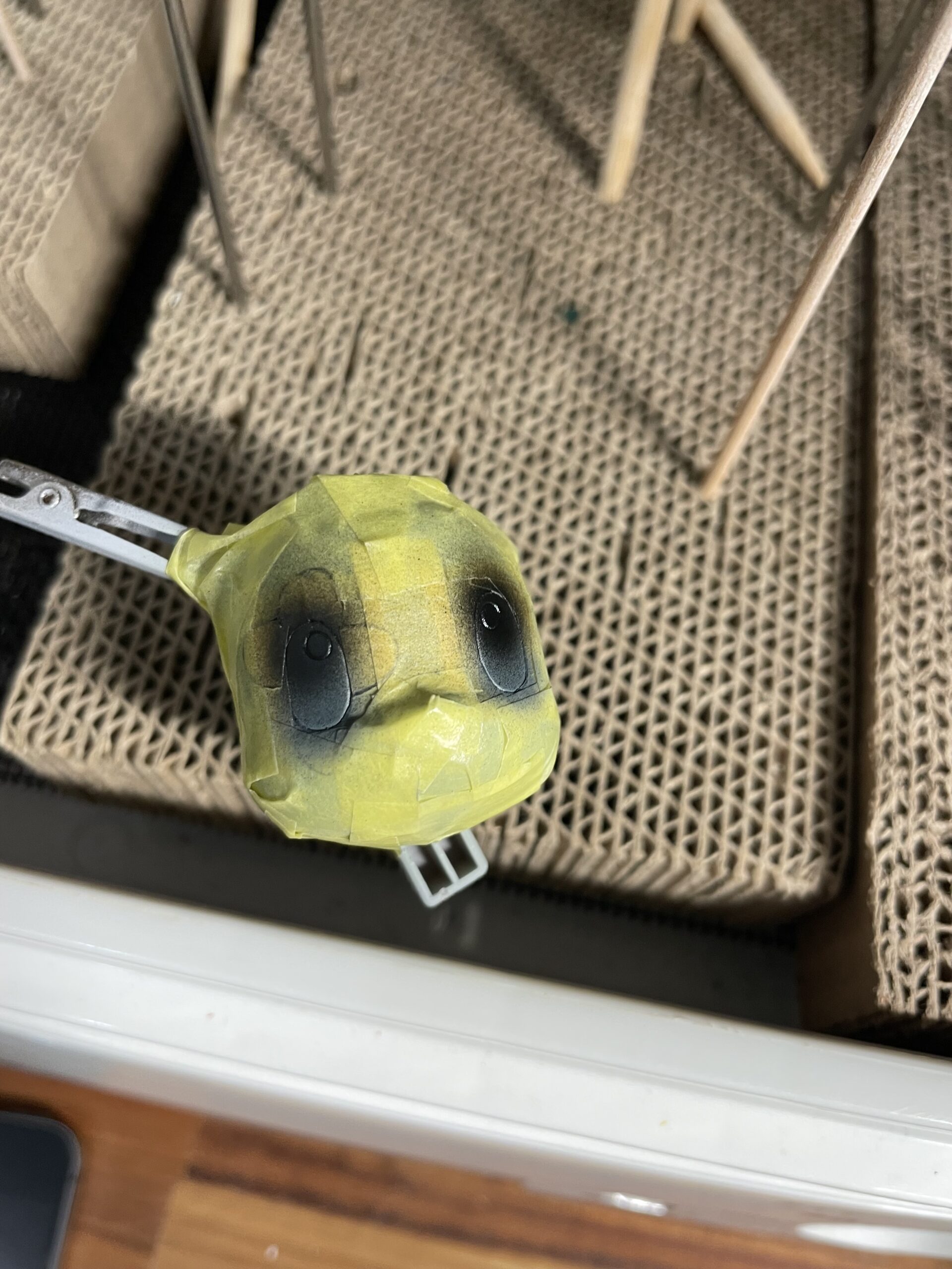 ➡写真の様に目の部分をマスキングして、つや消しにならないようにしておく